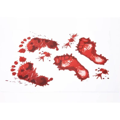 General description Bloody Footprints & Blood Splats Halloween Clings Decoration includes 4 pieces of spooky stickers designed to create a chilling atmosphere for your Halloween festivities. These decorations are perfect for adding a frightful touch to your home, whether on walls or windows. Usage These Halloween clings can be easily applied to various surfaces, making them ideal for: Decorating windows Enhancing wall displays Creating a haunted house effect