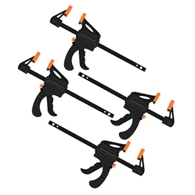 【Outstanding Material】The quick grip clamps are made of high-quality steel and nylon, with heat treated, robust hardened steel construction can prevent bar bending, superior durability. The sturdy, resilient construction of the woodworking clips holds sheet material and workpieces together during smaller-scale projects. 【Easy to Use】The woodwork quick release clamps are easy to use. Trigger design provides simple, one handed operation, slide arm and hold the wood in place. You just need to press the slide button to free the jaw and then squeeze the trigger to reach the distance you actually need. The wood clamps quick grip is convenience to use. 【Ergonomic Handle】The f wood clamps are equipped with ergonomic handle, which has smooth thick rim with no burrs, and grip on comfortably. The quick clamp ratchet bar clamps are with soft jaw pads, gripping tightly without damaging or scratching the surfaces. This design of the f clips for easily moving items, and provide effective function when you use it. 【Quick Clamp Fixing Tool】The woodworking f clamps are with locking screw to fixed the claming distance. Once set, the jaw is locked and will not shift. This wood clamp set can quickly and accurately fix the parts to make woodwork easier and more convenient. Simple trigger action is smooth. 【What You Will Get】This package includes 4 ratchet bar clamps, which is enough for you daily use. The integrated quick release button allows single-handed operation. The woodwork clamps quick grip is a good tool for quick woodworking, manual work, DIY handmade craft, and more. Widely used in furniture manufacturing and packaging industry.