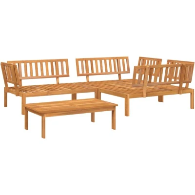 This wooden pallet sofa set with slatted design will make a great addition to your garden, patio, or terrace for enjoying a cosy time with your family or friends. Long-lasting material: Solid acacia wood is a beautiful natural material. Acacia wood is a tropical hardwood, which is dense, sturdy, and durable.Stable and easy-to-clean tabletop: This garden table has an acacia wood top that is sturdy, durable, and easy to clean with a damp cloth.Well-ventilated and pooling prevention: The slatted design promotes optimal airflow and effectively prevents water pooling, ensuring a dry and comfortable seat.Modular design: This outdoor furniture set has a modular design, making it completely flexible and easy to move around, so you can create a customised outdoor furniture arrangement. Good to know:To make sure your outdoor furniture stays beautiful, we recommend protecting it with a waterproof cover.Cushion is not included with this pallet sofa. We do offer a standard 120x80 cm pallet cushion. You can check our shop for a matching cushion.
