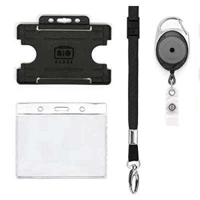 4 Piece ID Badge Set Black Includes Metal Lobster Clip Lanyard, Retractable Reel, & Pocket Card Holder, 8 Colours PCL Media ltd