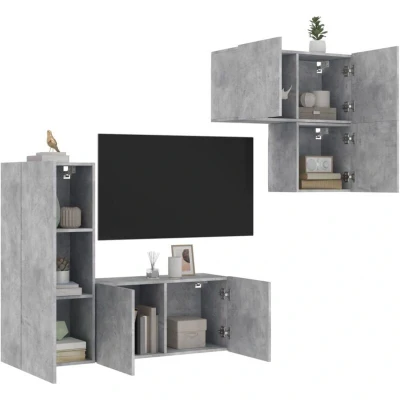 4 Piece TV Wall Units Concrete Grey Engineered Wood vidaXL