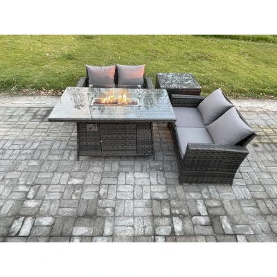 4 Pieces Garden Furniture Sets Poly Rattan Outdoor Patio Gas Firepit Dining Table Sofa Set for Backyard Dark Grey Mixed Fimous