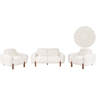 4 Seater Living Room Set White Boucle Upholstery 2 Sofa and Armchairs Soft Modern Organic Low Curvilinear ODNES