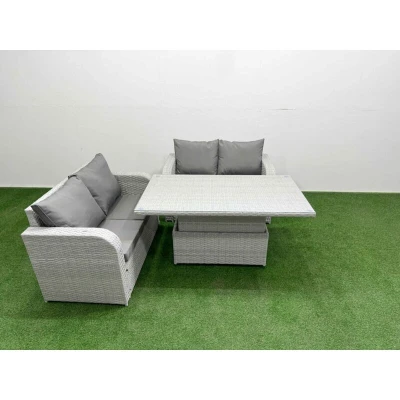 4 Seater Outdoor Love Sofa Set Rattan Garden Furniture with Adjustable Lifting Dining or Coffee Table Light Grey Fimous