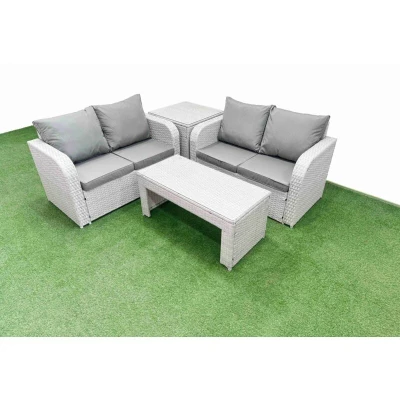 4 Seater Outdoor Love Sofa Set Rattan Garden Furniture with Oblong Coffee Table Side Light Grey Fimous