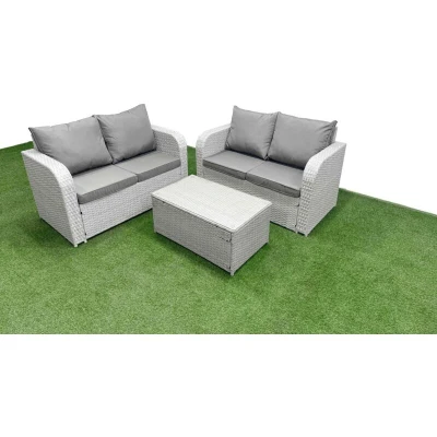4 Seater Outdoor Love Sofa Set Rattan Garden Furniture with Rectangular Coffee Table Light Grey Fimous