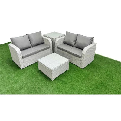 4 Seater Outdoor Love Sofa Set Rattan Garden Furniture with Square Coffee Table Side Light Grey Fimous