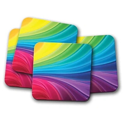 4 Set Rainbow Colours Coaster Art Mum Sister Fun Colourful #8886
