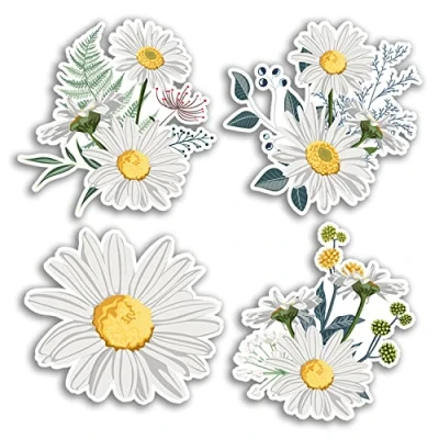 4 x 10cm Daisy Vinyl Stickers Floral Flowers Daisies Décor Home Design Partner Wheelie Bin Gift Kids Boys Girls Women Sticker #78963