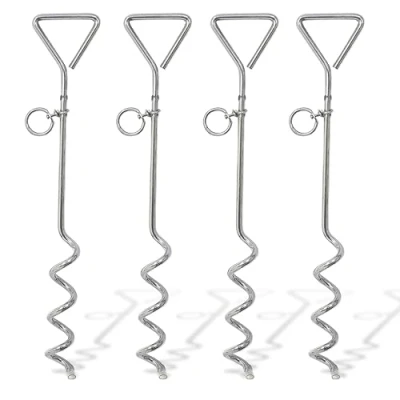 4 X 16" Dog Stake Steel Spiral HEAVY DUTY Ground Spike Tether Outdoor Camping Accessories for Chains outside Tie Out Cable (Stake Only, 40cm)