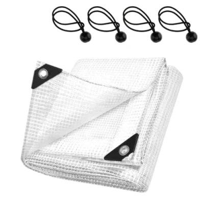Transparent Reinforced Mesh for Versatility - Allows daylight to pass while offering strength for greenhouse walls, canopy roofs, plant protection, camping shelters or as dust and rain protection for outdoor gear. Fully Waterproof, UV and Tear Proof - Crafted from 100 GSM PE with UV stabilisers and internal mesh reinforcement. Protects from sun, rain, mildew or damage, ideal as a heavy-duty cover for tools, vehicles and construction. Heat‑Sealed Seams & Rope‑Reinforced Edges - Designed for long-term rugged use. Reinforced hems and sealed seams prevent tearing under tension. Built to last in barns, workshops, gardens or outdoor projects. Alloy Eyelets Every Metre + 4 Ball Bungees - Rustproof metal grommets at 1 m intervals provide secure anchor points. Four included elastic ball bungees enable quick tie-down to posts, poles or trailers without tearing. Clear, Practical & Multi-Functional Sheet - Perfect for garden, camping, DIY, agriculture, or carports. Used as greenhouse lining, firewood cover, tool shield or roof underlay. Lightweight yet durable solution all year round. Please note that the stated size is the cut size, and the finished tarpaulin may vary by +/- 10%.