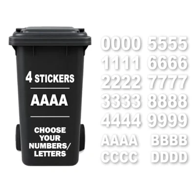 CLEARLY IDENTIFY YOUR BINS – You’ll receive a set of 4 bin numbers for wheelie bins, ensuring your bin or dustbin doesn’t get mixed up with your neighbour’s. EASY TO APPLY – No need for complicated instructions! These self-adhesive number stickers are designed to be stick on numbers for wheelie bins—just peel and apply. HIGHLY VISIBLE – At 17.5cm (7") tall, our bin stickers for wheelie bins ensure your bin labels stand out, preventing mix-ups on collection day. DURABLE & WEATHERPROOF – Made from high-quality adhesive numbers for wheelie bins, these wheelie bin stickers are built to withstand rain, wind, and sun for years. ORDER MULTIPLE NUMBERS – Want more than one number? Select the first number, add to basket, then repeat for the next. Your bin number stickers for wheelie bins will be made to order.