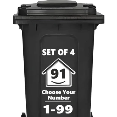 EASY BIN IDENTIFICATION – You’ll receive 4 sets of bin numbers for wheelie bins (1-99) featuring our unique Happy House design, perfect for making your bin stand out on collection day. GENEROUS SIZE FOR MAX VISIBILITY – Each wheelie bin sticker measures 15cm x 17cm, helping your wheelie bin numbers stay clear and recognisable at a glance. NO-FUSS APPLICATION – Our number stickers for wheelie bins are easy to apply: just clean your bin, peel the backing, and stick—no tools or instructions needed. DESIGNED TO LAST – Made from premium vinyl, these bin stickers for wheelie bins are waterproof, weather-resistant, and built to stay stuck through rain, wind, and sun. HIGH-QUALITY FINISH – Each pack contains long-lasting bin number stickers, made to handle the outdoors without fading, peeling, or falling off.