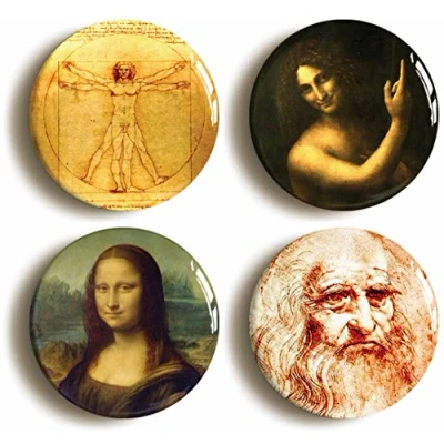 4 x"LEONARDO DA VINCI" BADGES BUTTONS PINS (1inch/25mm diameter) ART MONA LISA