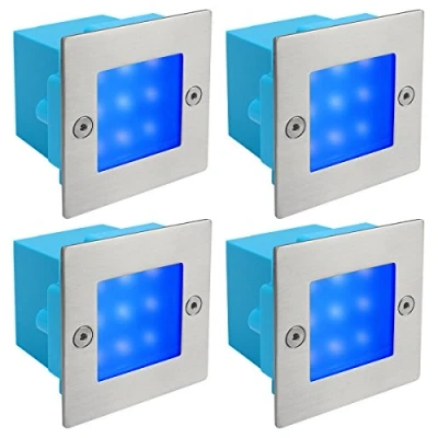 4 X Mini Brick Light LED Outdoor Step 70mm Square IP54 Blue Recessed Wall ZLC060B