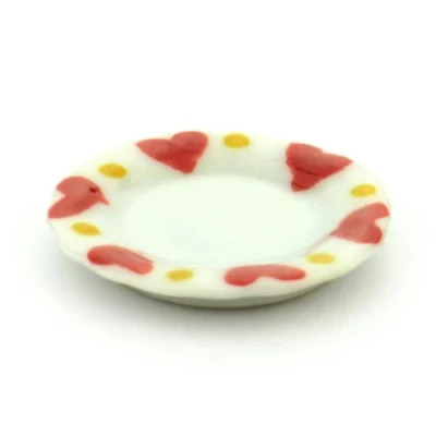 4 x MyTinyWorld Dolls House Miniature Heart Pattern Ceramic 20mm Plates