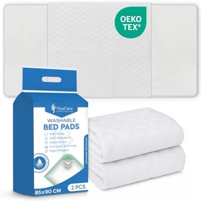 ULTIMATE PROTECTION FOR BEDS AND FURNITURE: Washable bed protectors offer reliable protection against leaks, spills, and incontinence accidents. Incontinence bed sheets are ideal for adults, seniors, children. Incontinence bed pads help keep mattresses, sofas, chairs, and car seats dry and clean. Bed pads are a perfect solution for home care, potty training and essential for every household. MAXIMUM ABSORBENCY WITH LEAK LOCK TECHNOLOGY: ViraCare washable bed pads are designed with a high-absorbency multi 4 layers core. Each pad can quickly absorb moisture, preventing leaks and odours from reaching your furniture. These bed wetting mats are ideal for overnight use and provide long-lasting dryness and peace of mind for both users and caregivers. SOFT, SKIN-FRIENDLY COMFORT FOR SENSITIVE SKIN: ViraCare bed protectors for incontinence feature a quilted, breathable top layer which feel soft against the skin and reduce the risk of irritation or discomfort. They are suitable for those with sensitive skin or prolonged bed use. Enjoy a restful night’s sleep with materials that promote comfort, airflow, and skin health. MACHINE WASHABLE, DURABLE & SECURE FIT: Waterproof mattress protector are machine washable and dryer-friendly, built to withstand repeated laundering without losing their shape or absorbency. ViraCare Bed mats include extended tuck-in flaps which secure the pad firmly under the mattress to prevent bunching or slipping. Stay protected with a pad that stays in place all night.