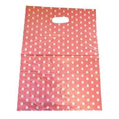 40+ Bags per Pack Fashion Pink Polka dots Spotted Plastic Carrier for Shops, Boutiques, Markets, Party by Fat catz copy (Pink 25cmx25cm)