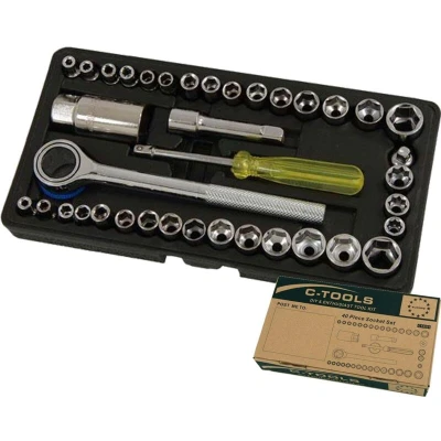 General description Neilsen Socket Set Metric Imperial Ratchet Extension includes a comprehensive collection of tools designed for both metric and imperial measurements. This 40-piece set features a variety of sockets and accessories suitable for various applications, making it an essential addition to any DIY enthusiast or professional mechanic's toolkit. Technical specifications 1Pc 3/8" Reversible Ratchet Handle 14Pcs 1/4" Dr. Metric Sockets: 4, 4.5, 5, 5.5, 6, 6.5, 7, 7.5, 8, 9, 10, 11, 12, 13mm 14Pcs 1/4" Dr. SAE Sockets: 5/32, 3/16, 7/32, 1/4, 9/32, 5/16, 11/32, 3/8, 13/32, 7/16, 15/32, 1/2, 17/32, 9/16" 3Pcs 1/4" Dr. SAE Sockets (8Pt.): 1/4, 5/16, 3/8" 1Pc 3/8" Dr. 3" Extension Bar 1Pc 1/4" to 3/8" Adaptor 1Pc 3/8" Dr. 21mm Spark Plug Socket 1Pc 6" Spinner Handle 2Pc 3/8" Dr. Metric Sockets: 15mm, 16mm 1 Blow Case