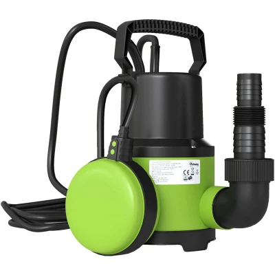 General description Tackle tough water removal tasks with the Outsunny Electric Water Pump. Its robust 400 W motor powers through up to 9000 L/H, lifting water up to 5 metres high and handling debris up to 15 mm. This water pump automates with water levels, ensuring efficient operation without constant oversight. Suitable for flooded areas, pools, and ponds, the Outsunny dirty water pump is built for performance and trusted by users. Technical specifications Colour: Green, Black Material: Plastic Overall Dimensions: 16L x 14W x 27H cm Max Flow Rate: 9000 L/H Max Submersion Depth: 7 m Threaded Connection: G1, G1-1/4 Max Grain Diameter: 15 mm Power: 400 W Voltage: AC 220-240V 50Hz Cable Length: 10 m Weight: 3 kg Other information Automatic activation at water level of 55 mm, prevents idling Multiple connection sizes for versatile hose attachments Plastic housing provides weather resistance and durability Portable handle for easy transport