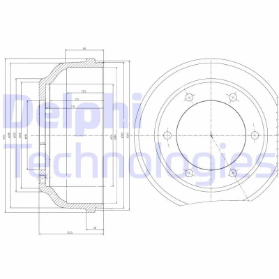 BF467; Brake Drum; DELPHI; 315mm; for FORD; 4041430, 4078770, 4446219, YC1W1126EB, YC1W1126EC, YC1W1126ED