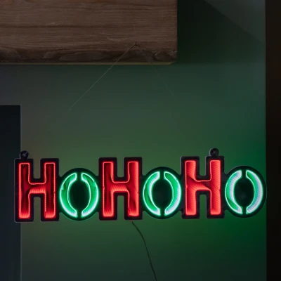 Bring festive cheer and a dazzling light display to your home this Christmas with this 40cm Light up Hanging Ho Ho Ho Infinity Christmas Mirror Sign. Designed to make a statement, this eye catching decoration combines traditional holiday spirit with modern lighting effects to create a truly mesmerising piece.. Featuring an infinity light effect, the sign appears to stretch endlessly into the mirror, giving a unique sense of depth and sparkle. Illuminated by green and red LEDs, the bold "HO HO HO" design radiates warmth and joy, perfect for adding a magical touch to your seasonal decor. Measuring 10cm in height and 40cm in length, this sleek and compact sign comes with a ready attached hanging loop, making installation quick and easy. Mains powered for reliable, long lasting use, and includes a generous 5 metre power cable, giving you the flexibility to position it exactly where you want it.. Suitable for indoor use only.. Product Specifications. Green and Red LEDs. Height: 10cm Length: 40cm Width: 1cm. Mains Powered with 5m Power Cable