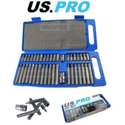 General description The US PRO 40pc Bit Set is a comprehensive collection designed for versatility and efficiency in various DIY and home improvement tasks. This set includes a range of hex, spline, and star bits, suitable for both deep and shallow applications, making it an essential addition to any toolbox. Technical specifications Includes 40 pieces Bit Holder 1/2" Drive x 10mm Bit Holder 3/8" Drive x 10mm 7 x 30mm Hex Bits: 4, 5, 6, 7, 8, 10, 12mm 7 x 75mm Hex Bits: 4, 5, 6, 7, 8, 10, 12mm 5 x 30mm Spline Bits: M5, M6, M8, M10, M12 5 x 75mm Spline Bits: M5, M6, M8, M10, M12 7 x 30mm Star Bits: T20, T25, T30, T40, T45, T50, T55 7 x 75mm Star Bits: T20, T25, T30, T40, T45, T50, T55