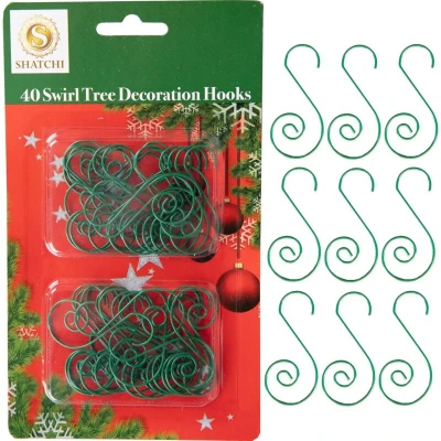40Pcs Green Christmas Ornaments Hangers Hooks for Tree Baubles, String Lights Reusable Swirl S Easy Xmas Art Craft Decorations