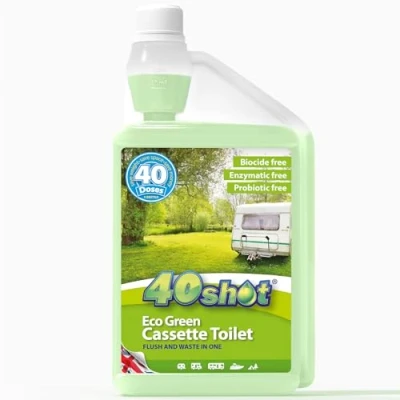 40Shot 2 in 1 Eco Green Caravan Toilet Fluid 1L Concentrated Cassette Cleaner & Rinse 40 Doses Per Bottle Biocide Free Septic Tank Safe Eliminates Odours with Long Lasting Fragrance