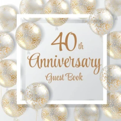 40th Anniversary Guest Book: Gold Glitter Balloons Party Sign In & Message Book Gift Log Memory Keepsake