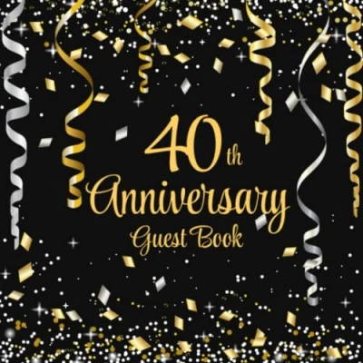 40th Anniversary Guest Book: Gold & Silver Confetti Party Sign In Message Book Gift Log Memory Keepsake