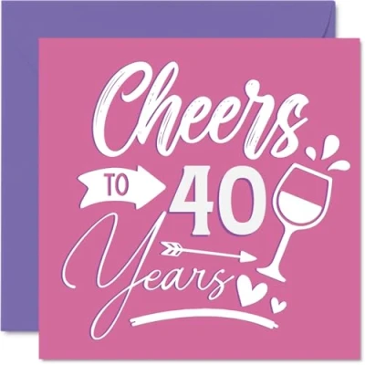 40th Birthday Cards for Women Cheers Happy Card 40 Year Old Woman Wife Daughter Sister Colleague, 145mm Bday Greeting