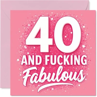 MAKE HER SMILE WITH THIS UNIQUE BIRTHDAY CARD: This exceptional quality birthday card for her shows the design '40 AND FUCKING FABULOUS'. If you are looking for special birthday greetings cards for Women birthday card then then this happy birthday card is bound to make her smile. Not just for birthday gifts for Women this could also be for Colleague, Sister, Wife, Daughter, Friend, Niece, Auntie or Neighbour. WHAT DO YOU GET: The card is printed on one side and BLANK ON THE INSIDE to allow you to write your very own message. The unique fun design is printed on a specially sourced and environmentally responsible board. At 360 microns thick the natural white one-sided gloss board has a quality look and feel. Supplied with a coloured gummed envelope to complement the design and ready to be sealed and sent in the post. Great Colleague birthday cards, 40th birthday card, Sister birthday card. NO INK SMUDGES: There is nothing worse than writing inside a card to find that the shiny surface makes the ink smudge. This is why we use a high quality one sided coated board. The uncoated side will absorb more of the ink from your pen to make smudging a thing of the past. 40th Birthday card for Wife, 40th Birthday card for Daughter, 40th Birthday card for Friend. SIZES: Greeting Card = 145mm x 145mm, Envelope = 155mm x 155mm, Card Thickness = 360 micron. Niece 40th birthday card, birthday cards for Auntie, cute birthday cards for Neighbour, 40th birthday card Colleague, Sister 40th birthday card. MADE AND QUALITY CHECKED IN THE UK: We print and manufacture all our products right here in the UK so you can be sure of a fast turnaround and a product that is expertly made. Using environmentally responsible premium board our card is conscious of the responsible management of the world's forests - perfect birthday cards for Women, fun birthday cards for her, Sister 40th birthday cards, female birthday cards.