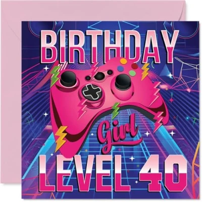40th Birthday Cards for Women Gamer Level Happy Card 40 Year Old Woman Wife Daughter Sister Colleague, 145mm Bday Greeting