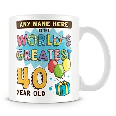 40th Birthday Gift for Men Personalised Mug/Cup Add Name Worlds Greatest Design Blue