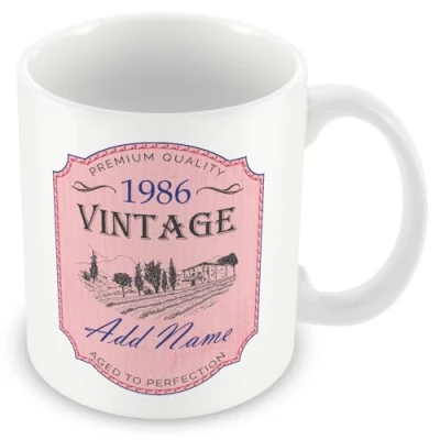 40th Birthday Gift Vintage 1984 Personalised Wine Mug/Cup Add Name Pink