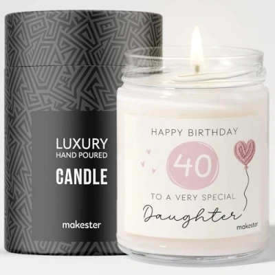 40th Birthday Gifts for Daughter Luxury Soy Wax Vanilla, Jasmine, Sugared Almond Makester