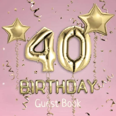 40th Birthday Guest Book: Message Logbook and Book for Party 100 Pages Guests to leave their Comments & Wishes Pink Cover with Golden Balloons