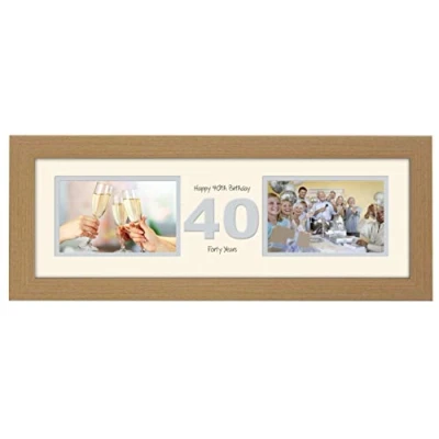 40th Birthday Photo Frame Fortieth Gift Takes Two 6x4 Landscape Photos 1224A (Oak Finish Cream Mount Grey Inside)