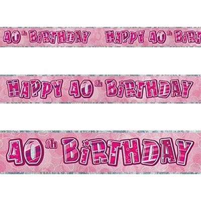 40th Pink Happy Birthday Banner Glitz for Wedding Anniversary Party Decorations Unisex...