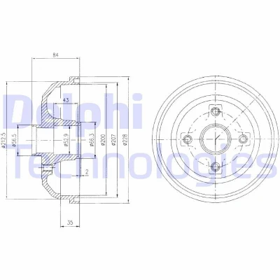BF471; Brake Drum; DELPHI; 228mm; for VAUXHALL, OPEL; 418000, 9004416, 9196287, 9166287
