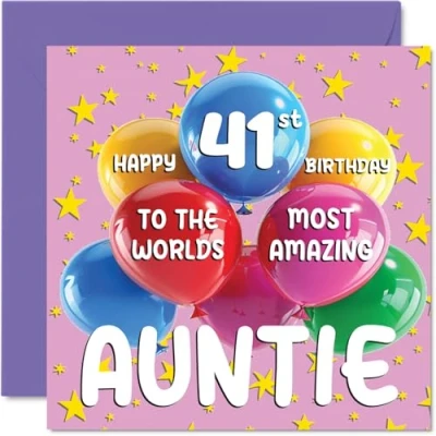 41st Auntie Birthday Card World's Most Amazing Happy from Nephew Niece, 145mm Age 41 Greeting Cards for Aunt Aunty