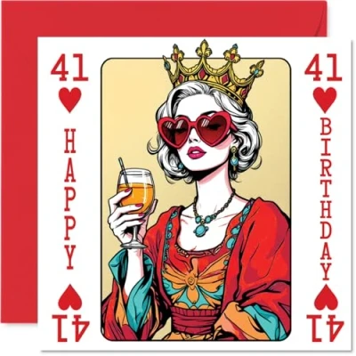 41st Birthday Cards for Women Queen Playing Card Happy 41 Year Old Woman Niece Cousin Auntie Friend, 145mm Bday Greeting