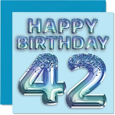 42nd Birthday Card for Men Blue Glitter Party Balloon Happy Cards 42 Year Old Man Friend Dad Brother Uncle Cousin, 145mm x Forty Two Second Greeting Gift