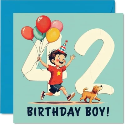 42nd Birthday Cards for Men Balloon Boy Happy Card 42 Year Old Man Colleague Dad Neighbour Husband, 145mm Bday Greeting