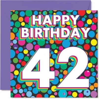 42nd Birthday Cards for Men Women Funky Rainbow Dots Happy Card 42 Year Old Man Woman Husband Nephew Daughter Neighbour, 145mm Bday Greeting