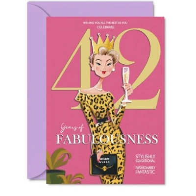 42nd Birthday Cards for Women Years Of Fabulousness Happy Card 42 Year Old Woman Friend Cousin Auntie Colleague, 5x7 Inch Bday Greeting