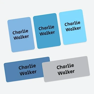 43 x Mixed Pack Personalised Stick On Waterproof Name Labels Blue Mix