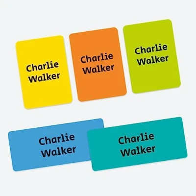 43 x Mixed Pack Personalised Stick On Waterproof Name Labels Boy's Bright Mix