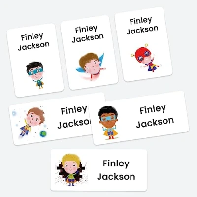 43 x Mixed Pack Personalised Stick On Waterproof Name Labels Superheroes